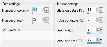 Crop merged opaque. Now make sure your new border layer is desaturated. Mirror the layer. Apply texture effects-MosaicGlass on these settings: